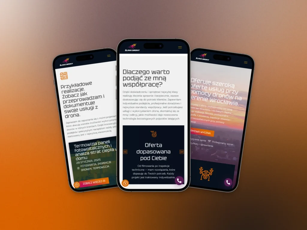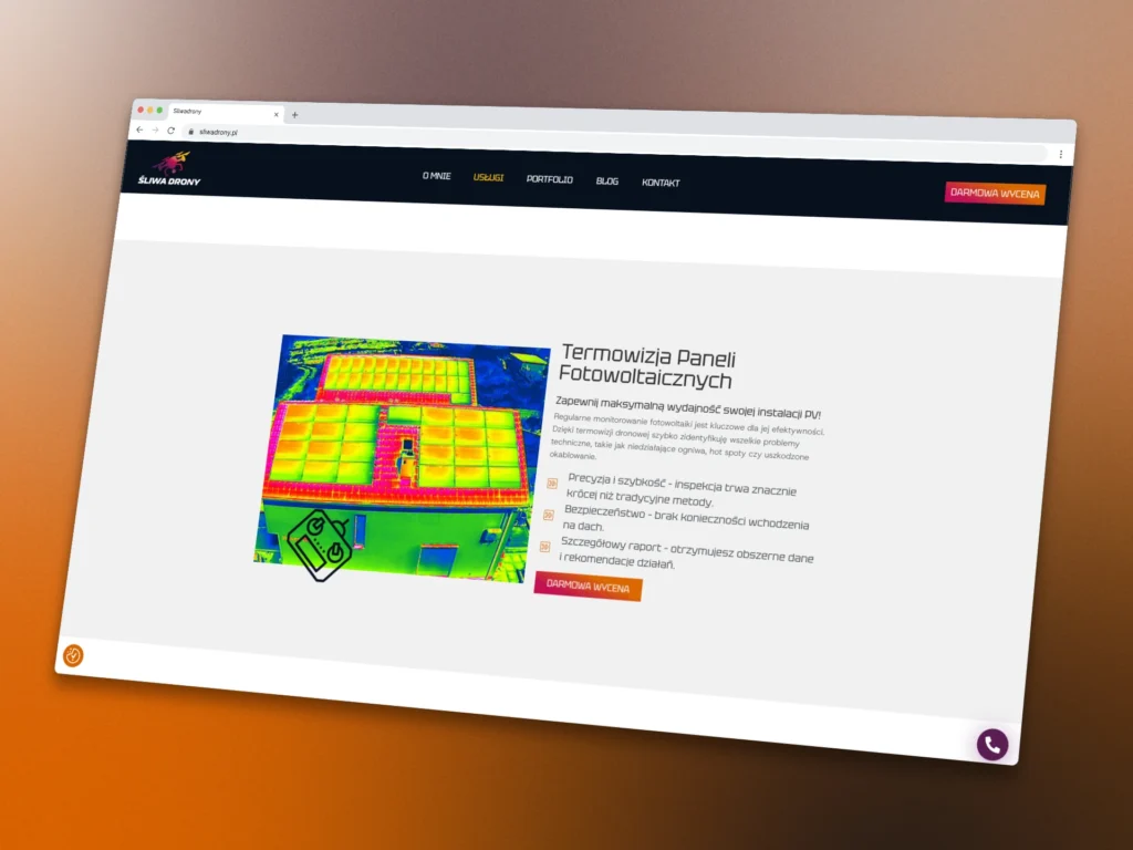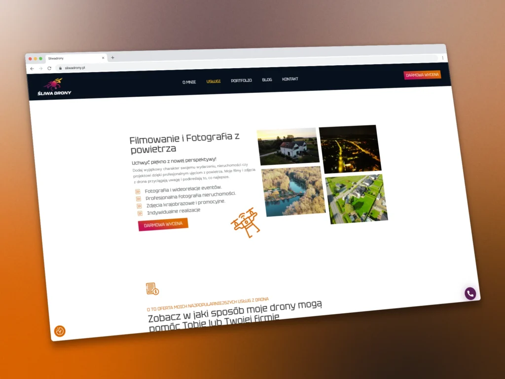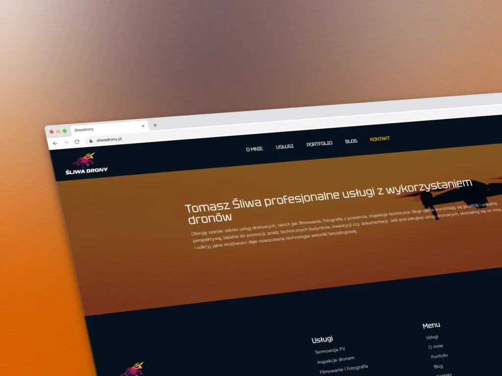 Pan Tomasz zgłosił się do mnie z prośbą o wykonanie strony, która będzie wspierać jego biznes związany z inspekcjami technicznymi z użyciem dronów oraz fotografią lotniczą.