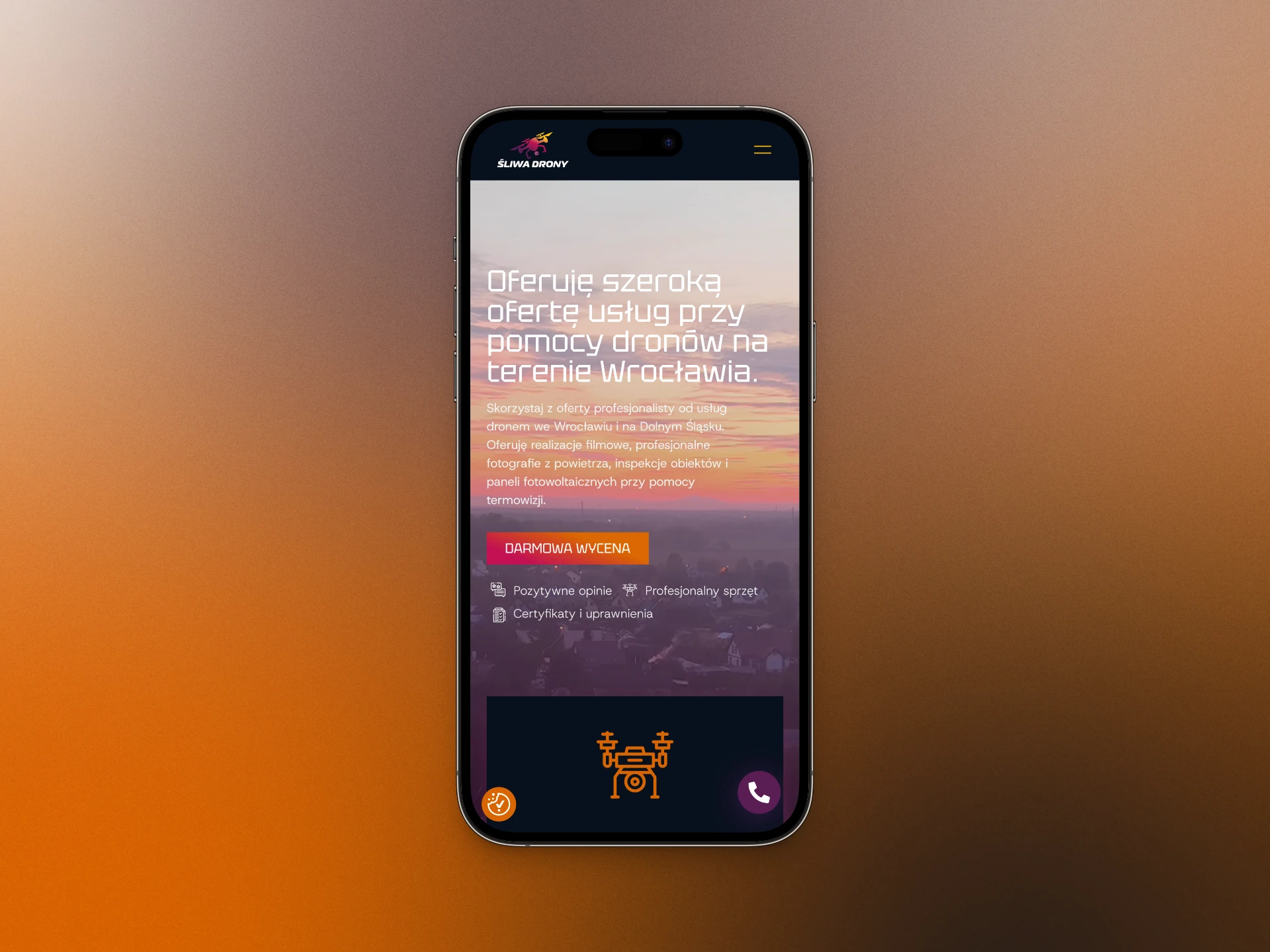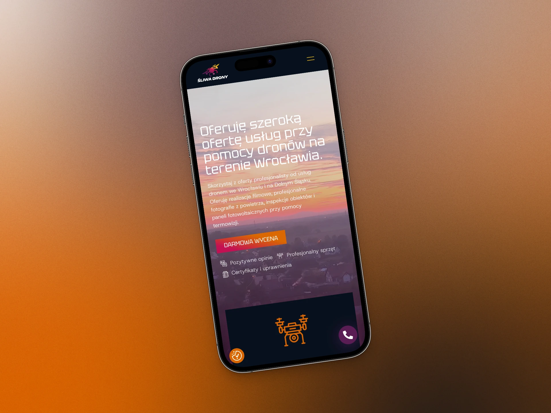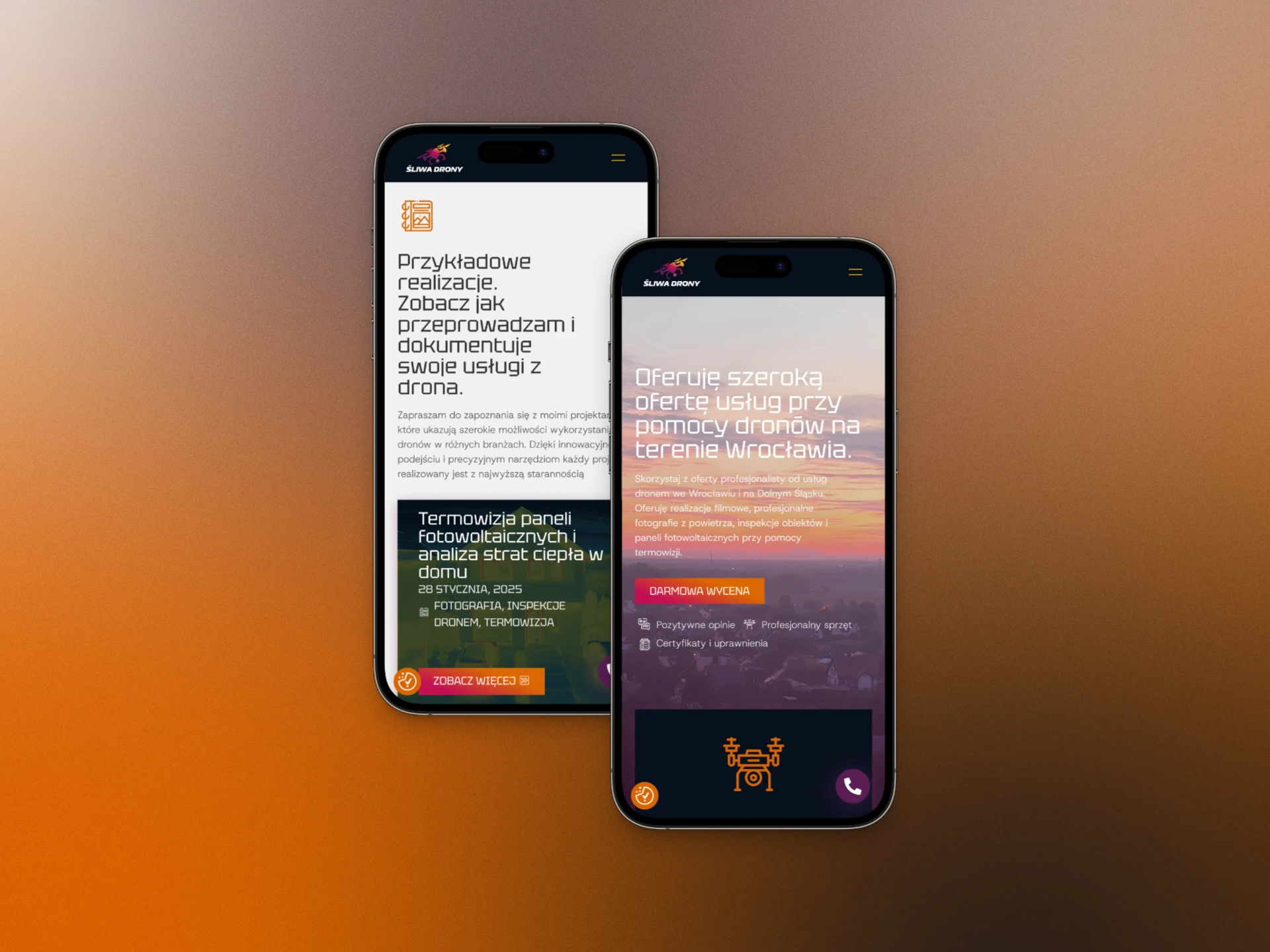 Pan Tomasz zgłosił się do mnie z prośbą o wykonanie strony, która będzie wspierać jego biznes związany z inspekcjami technicznymi z użyciem dronów oraz fotografią lotniczą.