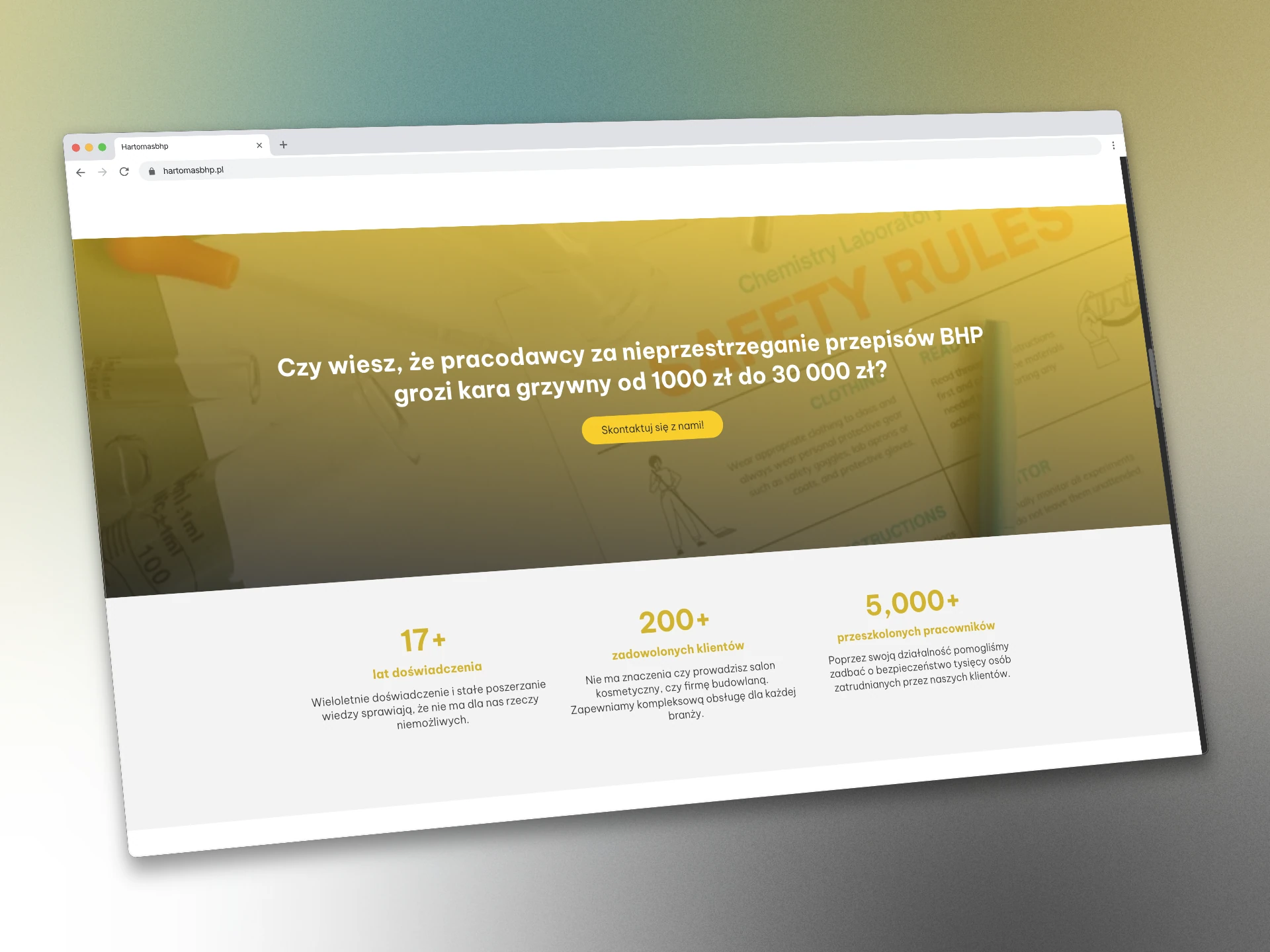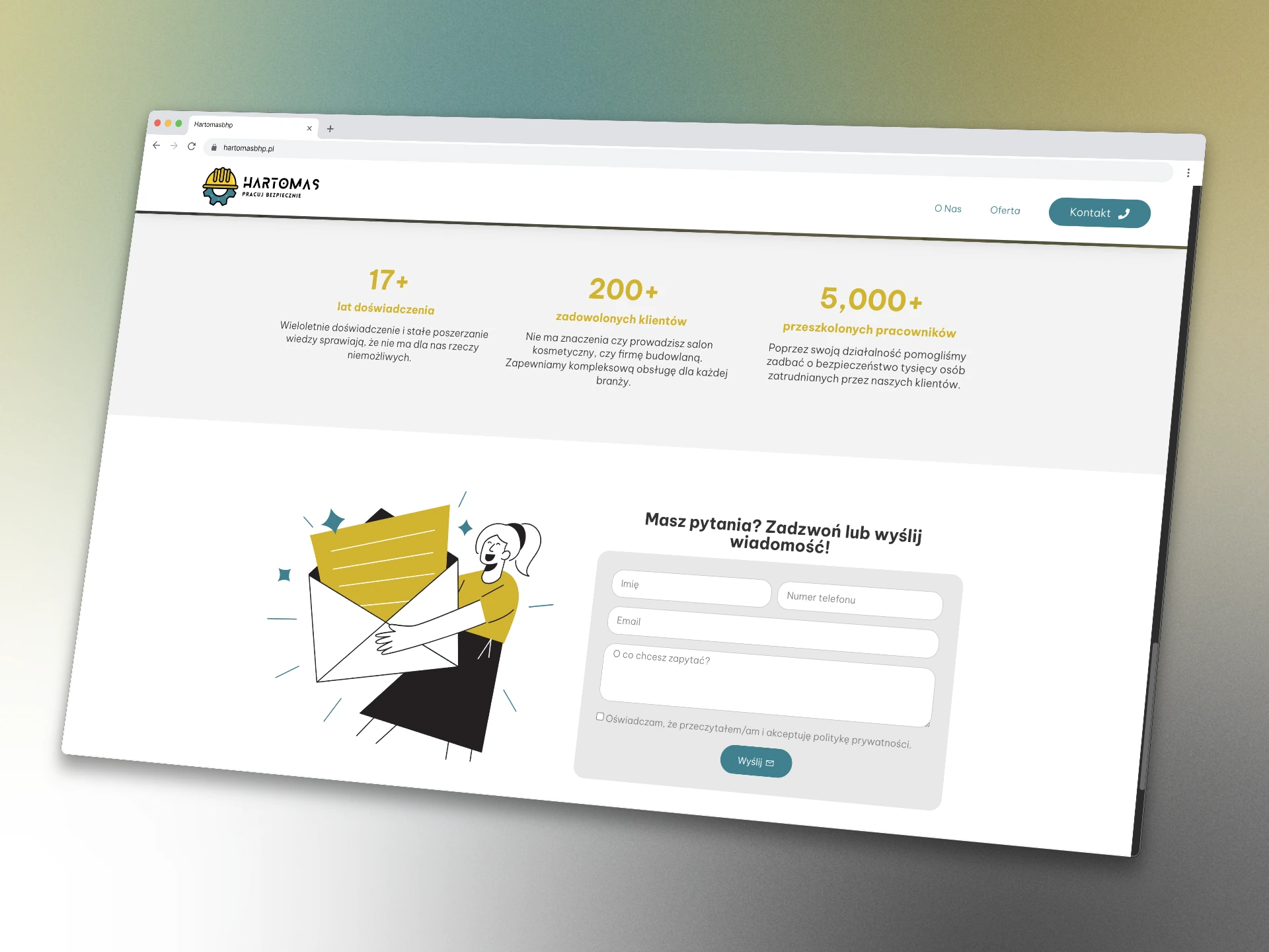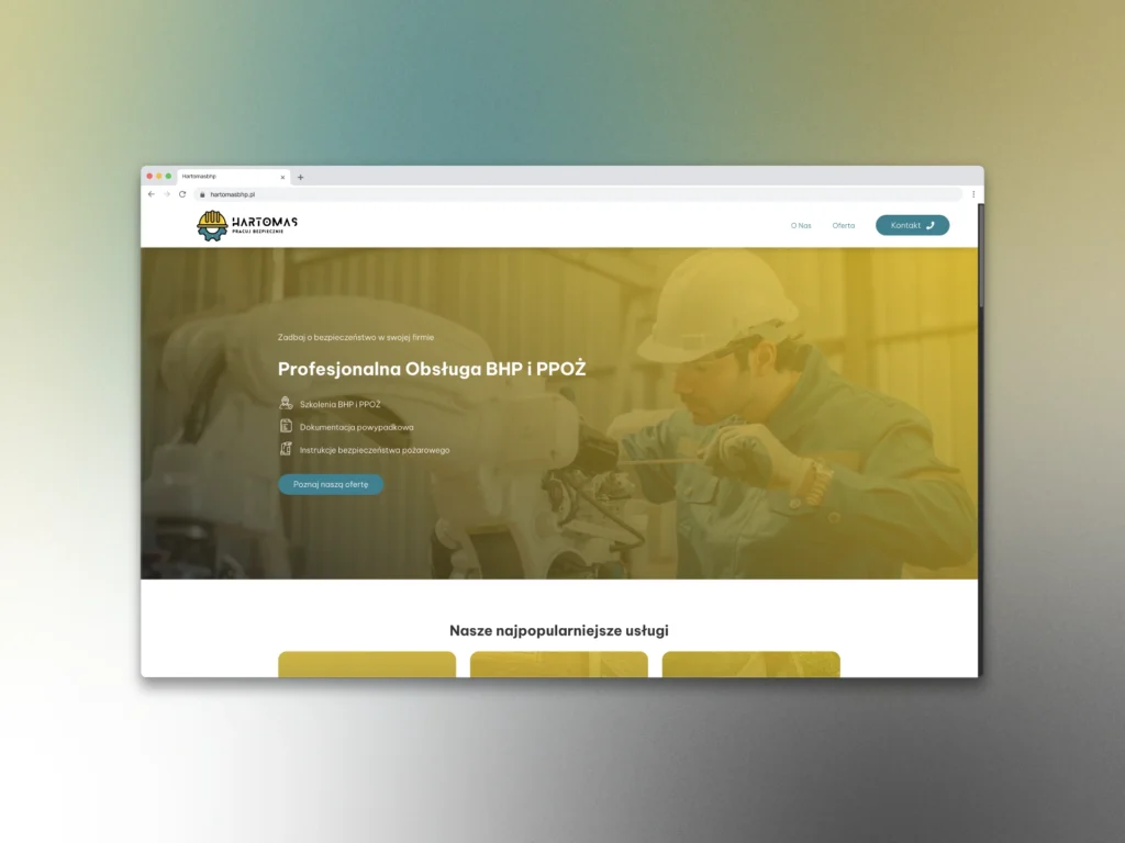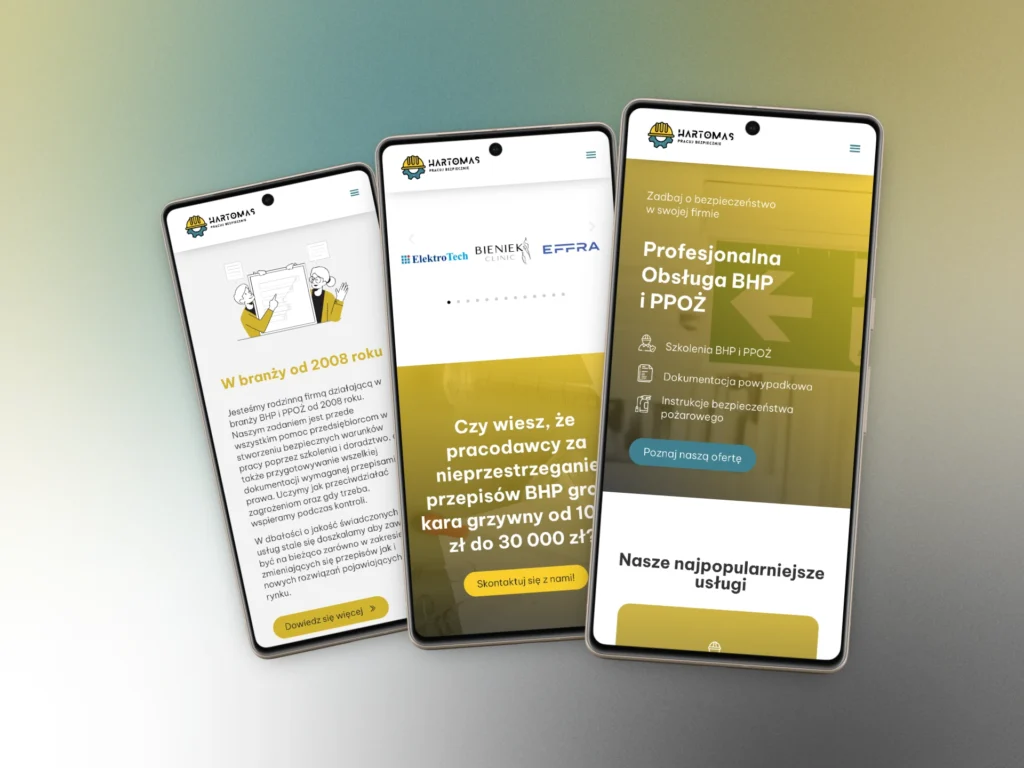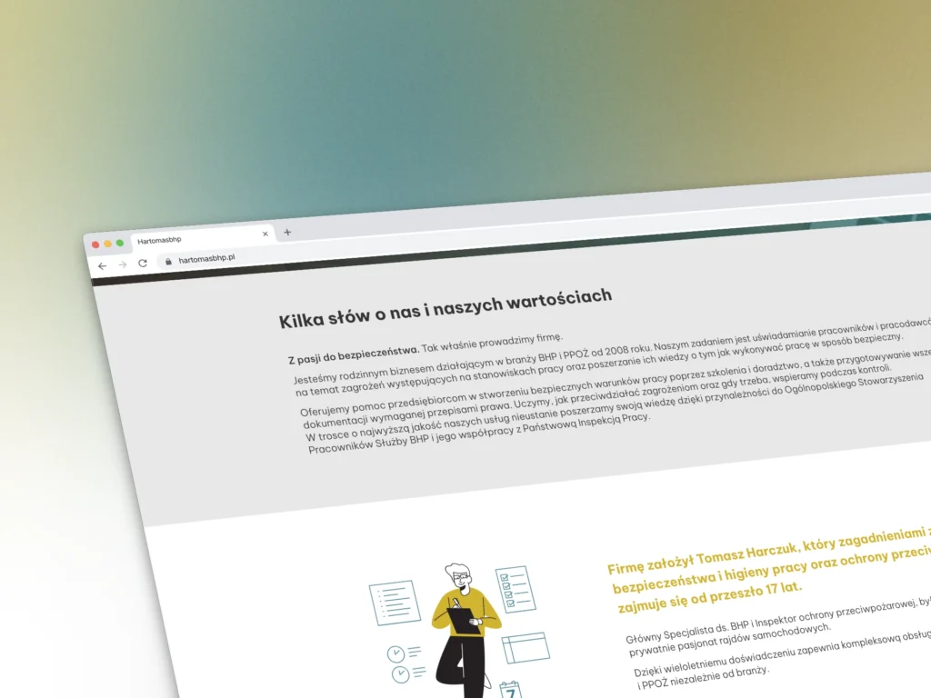Strona firmy HARTOMAS Tomasz Harczuk jest zrozumiała i przejrzysta. Przenosi użytkownika do zadanej lokalizacji bez błądzenia po stronach, podstronach, linkach itp. Zamieszczono na tej stronie konkrety czyli co ja robię dla właścicieli firm w zakresie BHP żeby oni mieli spokój. Jestem MEGA ZADOWOLONY. Współpraca z Maćkiem jest bardzo satysfakcjonująca bo jego profesjonalizm wykonywania usługi nie odrywał mnie zbyt mocno od mojej pracy, a on wykonał swoją WYŚMIENICIE – DZIĘKUJĘ 👍